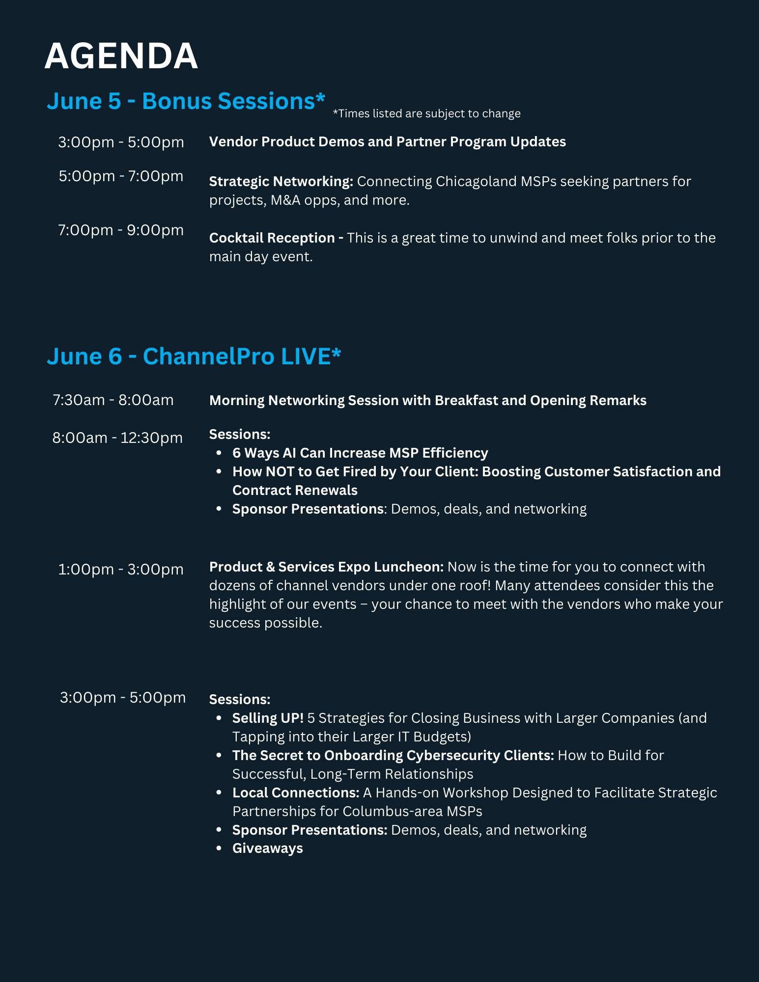 Our sponsors make ChannelPro Events possible: We are proud to present a showcase of SMB vendor solutions at every event to provide additional learning opportunities and enable channel pros to get one-on-one advice on employing new technologies and services to better serve their clients and their own businesses. Contact information of event registrants is shared with sponsors to allow them to keep you up to date on their solutions. If you are a resident of California, you can